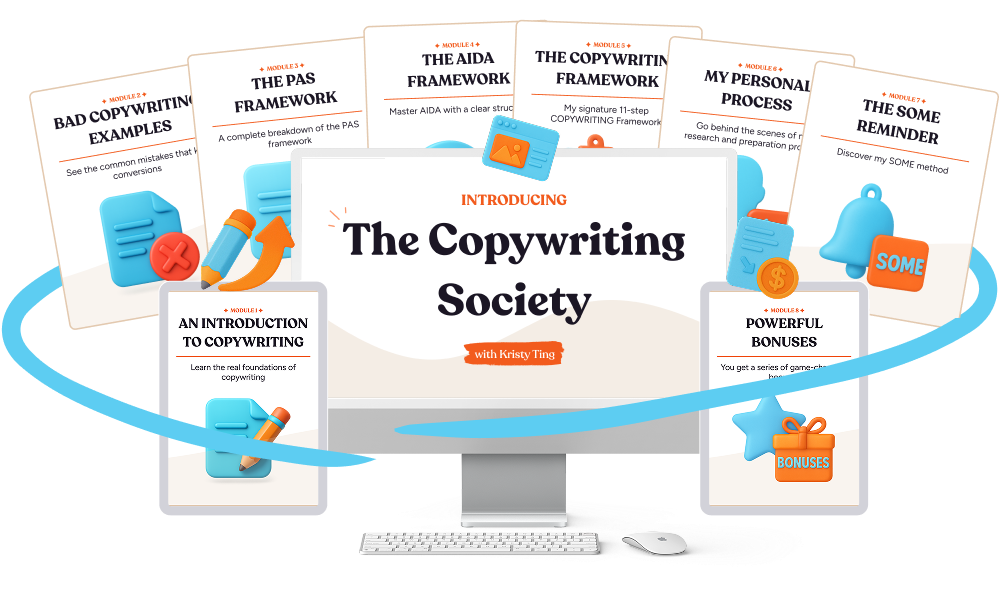 Before I created The Copywriting Society, I was working with business owners who were struggling with writing their own copy, constantly searching for good copywriters and bleeding thousands of dollars on the search alone.